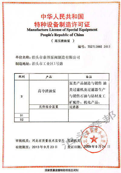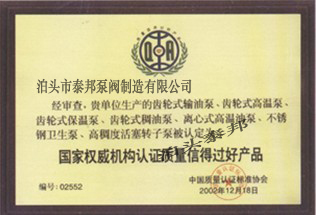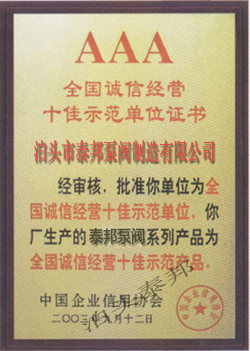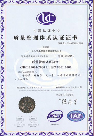 ISO9001質量管理體系證書英 質量承諾信譽單位證書 特種泵設備制造許可證書