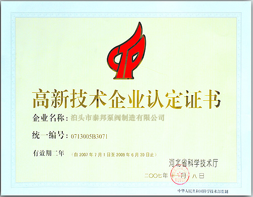 河北誠信企業(yè) 高新技術認定書 國家權威認證