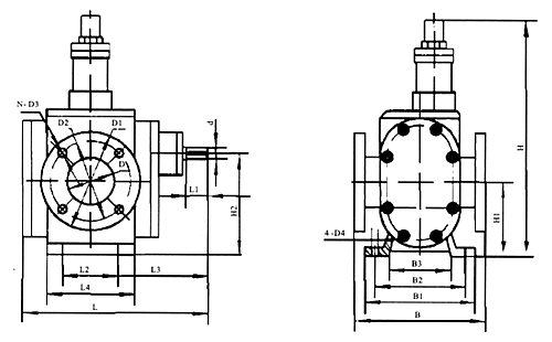 • YCB圓弧齒輪泵型外形及安裝尺寸圖曲線