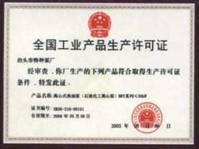產(chǎn)品制造生產(chǎn)許可證書